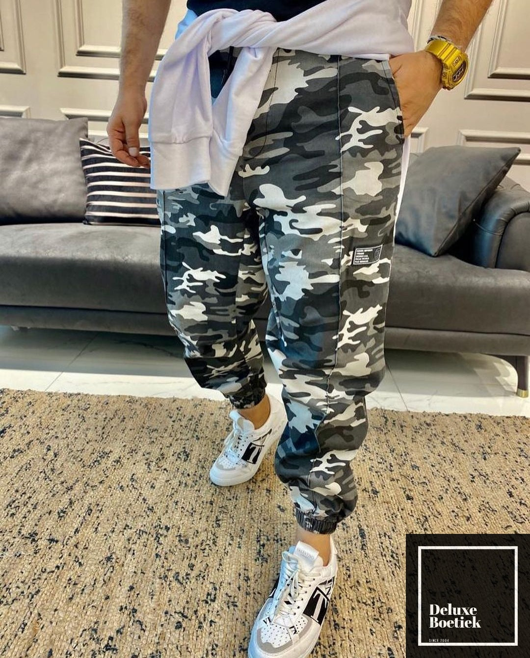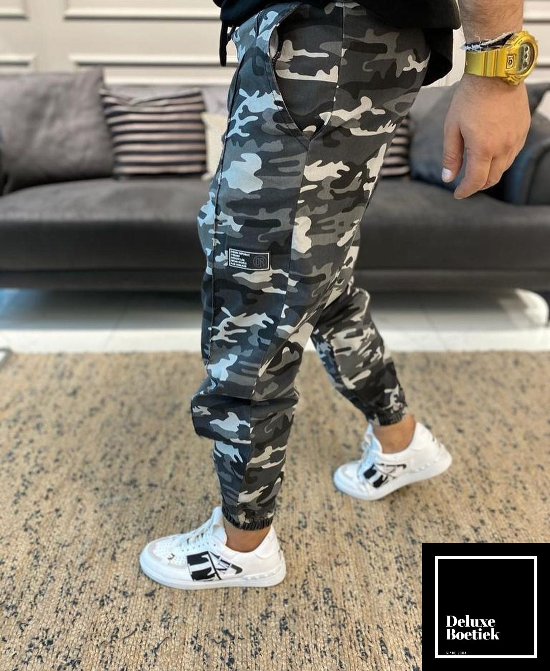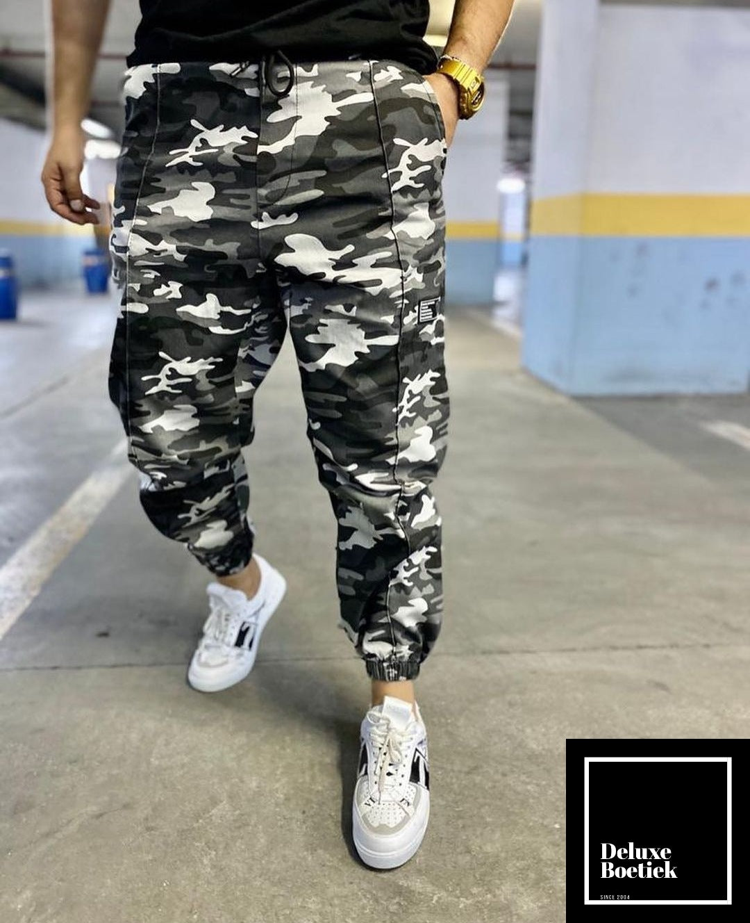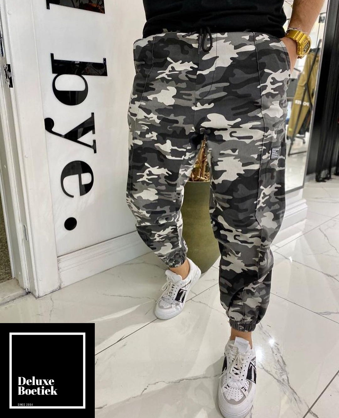 Модерен мъжки ежедневен панталон с еластична талия и ластици на глезените.
