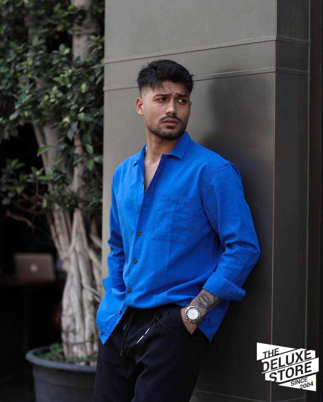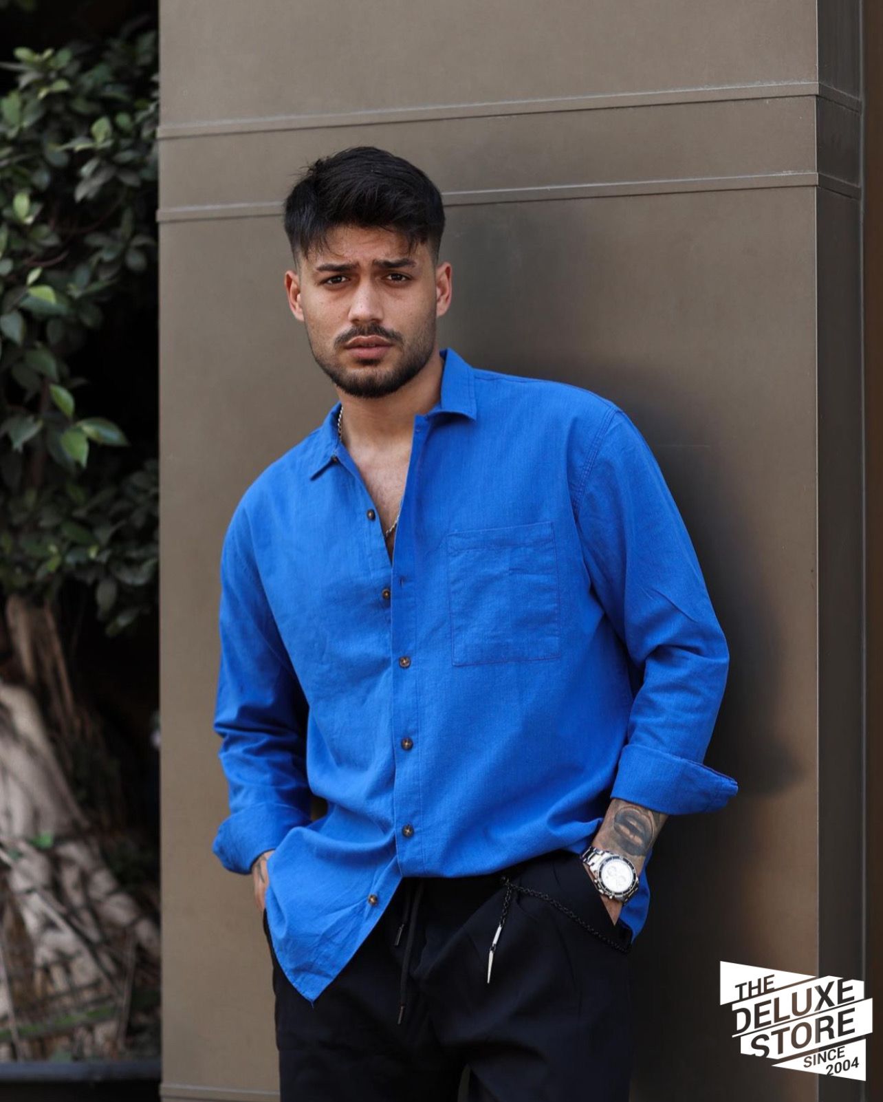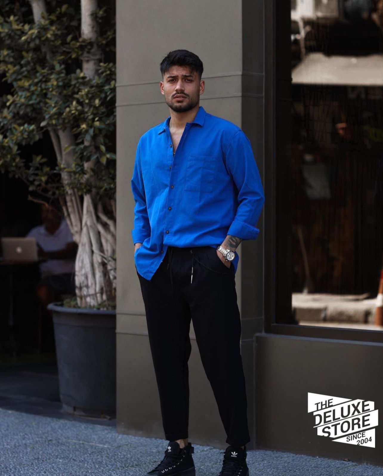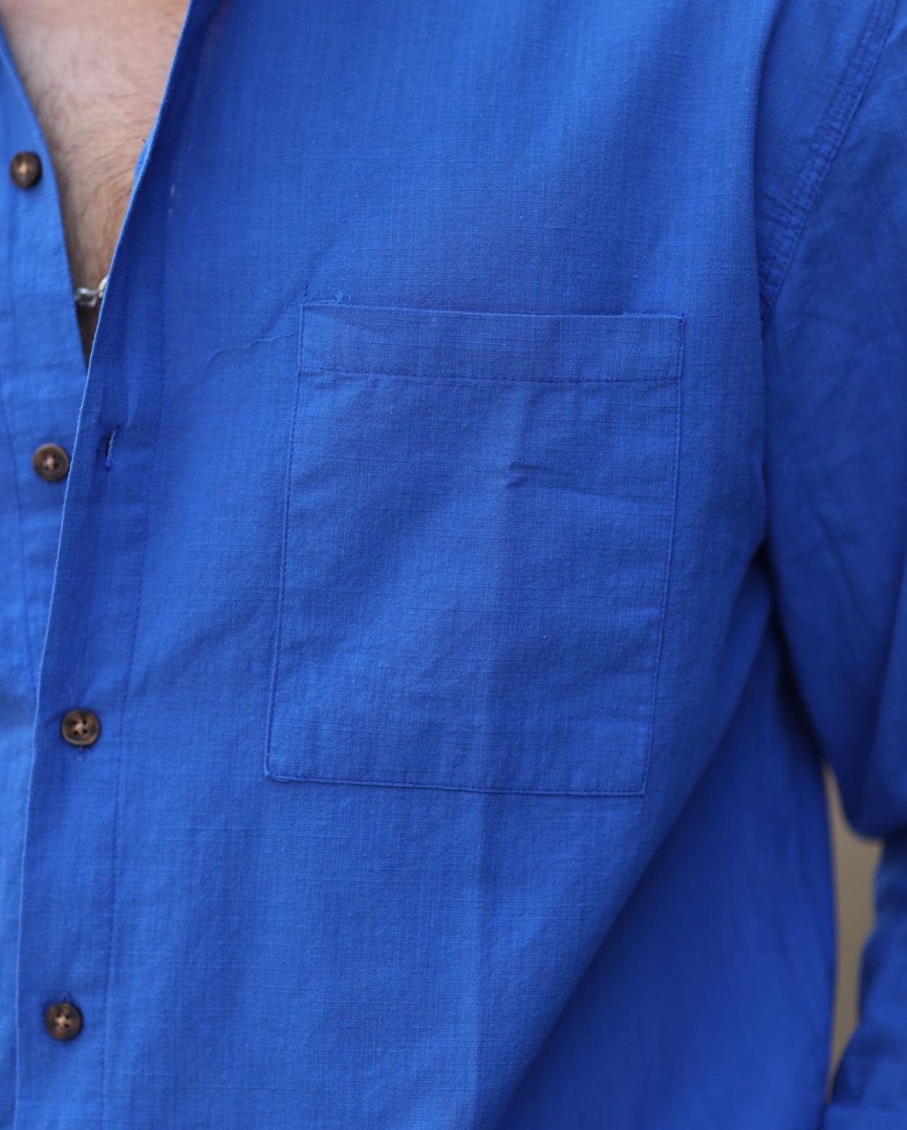 Изчистена ежедневна мъжка риза със симетрична дължина и единичен джоб от ляво