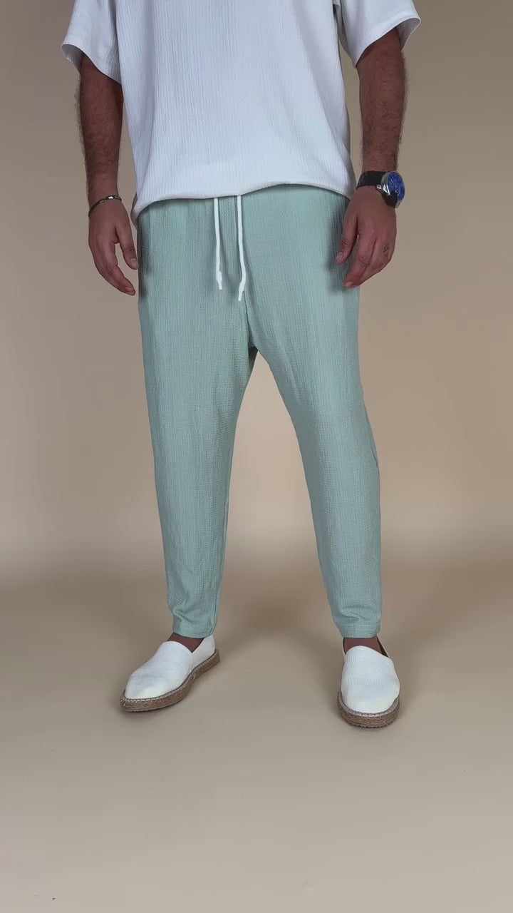 Открий съвършения баланс между комфорт и стил с Baget Jogger – мъжки панталон в модерен цвят мента. Изработен от лек и еластичен усукан плат с текстура и първокласно качество, този модел е създаден за градска визия и ежедневен комфорт.