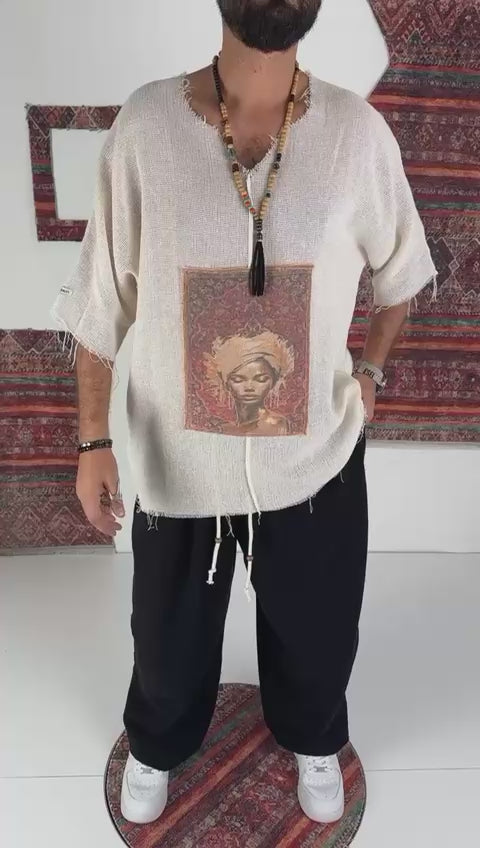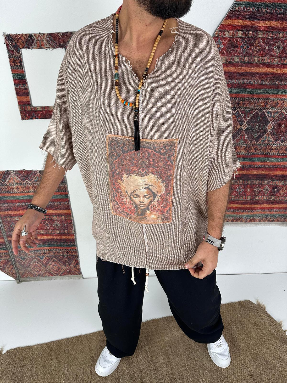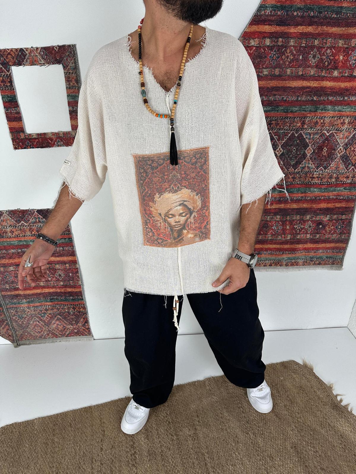 Buldan Nomad е мъжка бохем блуза, вдъхновена от свободния дух, етно културата и артистичния street стил. Изработена от характерна Buldan тъкан, тя впечатлява с релефна текстура, сурови завършеци и централен принт, който придава силно изразена идентичност на визията.