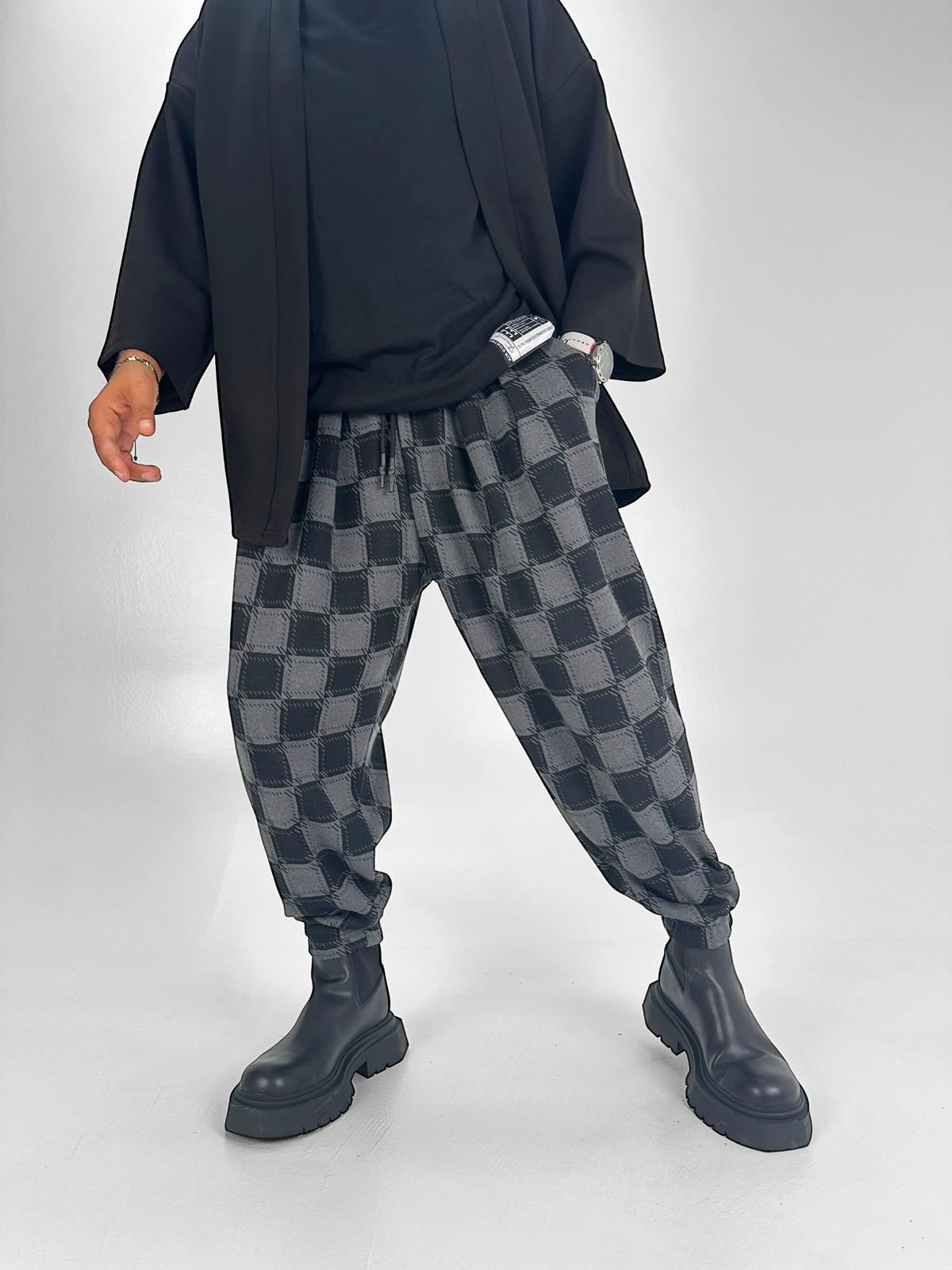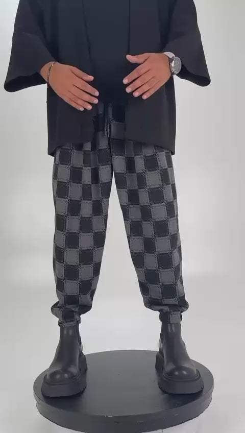 Създай смела визия с Dama Flow – плисиран половин шалвар със "street vibe". Еластичната талия с връзки и relaxed кройката осигуряват комфорт, докато "jacquard" десенът в шахматен стил (dama pattern) добавя модерен и контрастен акцент.