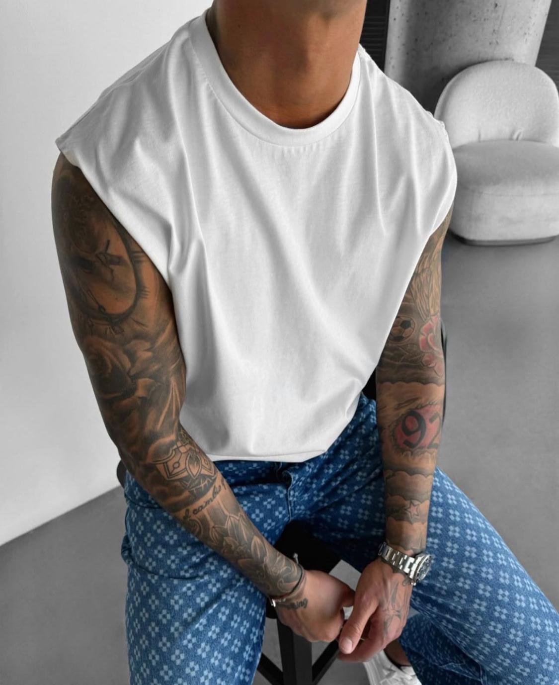 Изрази свободния си дух с Deep Blanc – стилна и удобна безръкавна тениска, създадена за лятото и градския ритъм. Изработена от проветрива памучна материя, този модел съчетава небрежна естетика и съвременен уличен стил.
