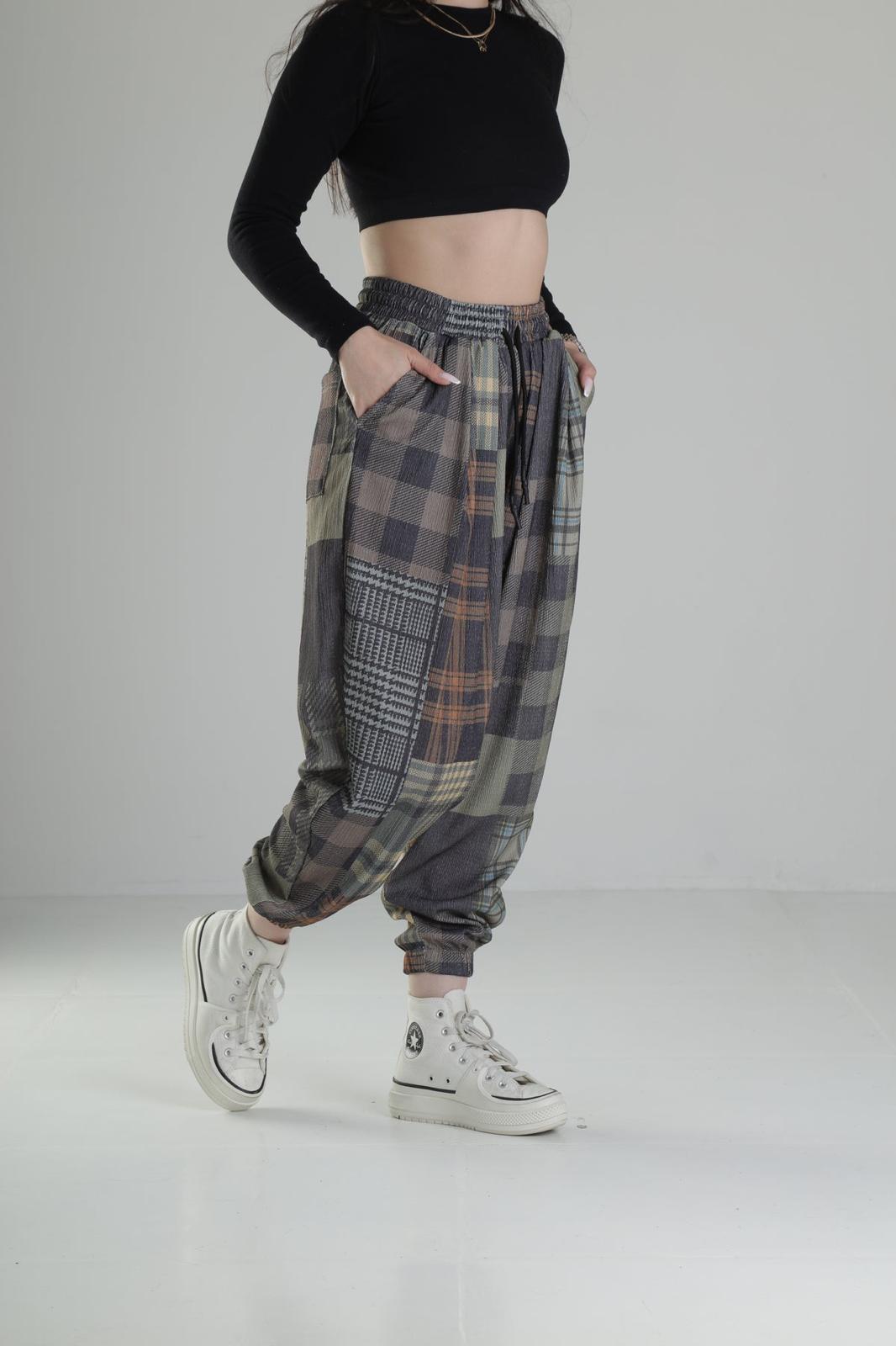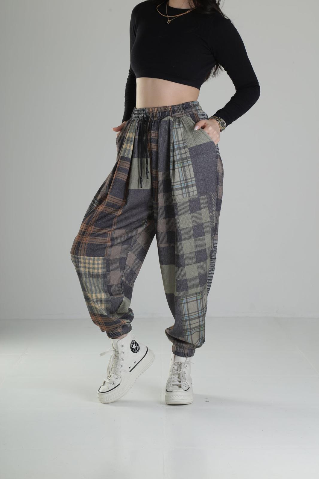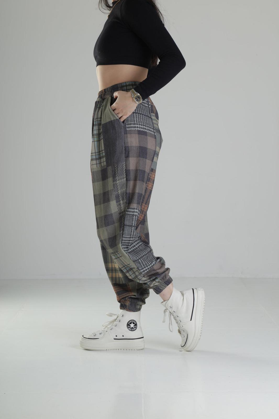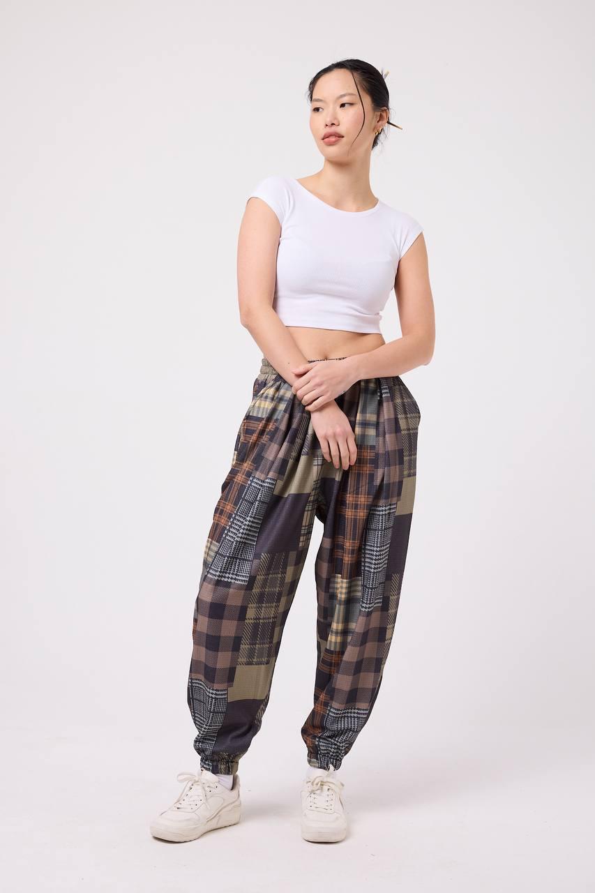 - 🧵 Дизайн: jogger шалвар с patchwork plaid / tartan десен