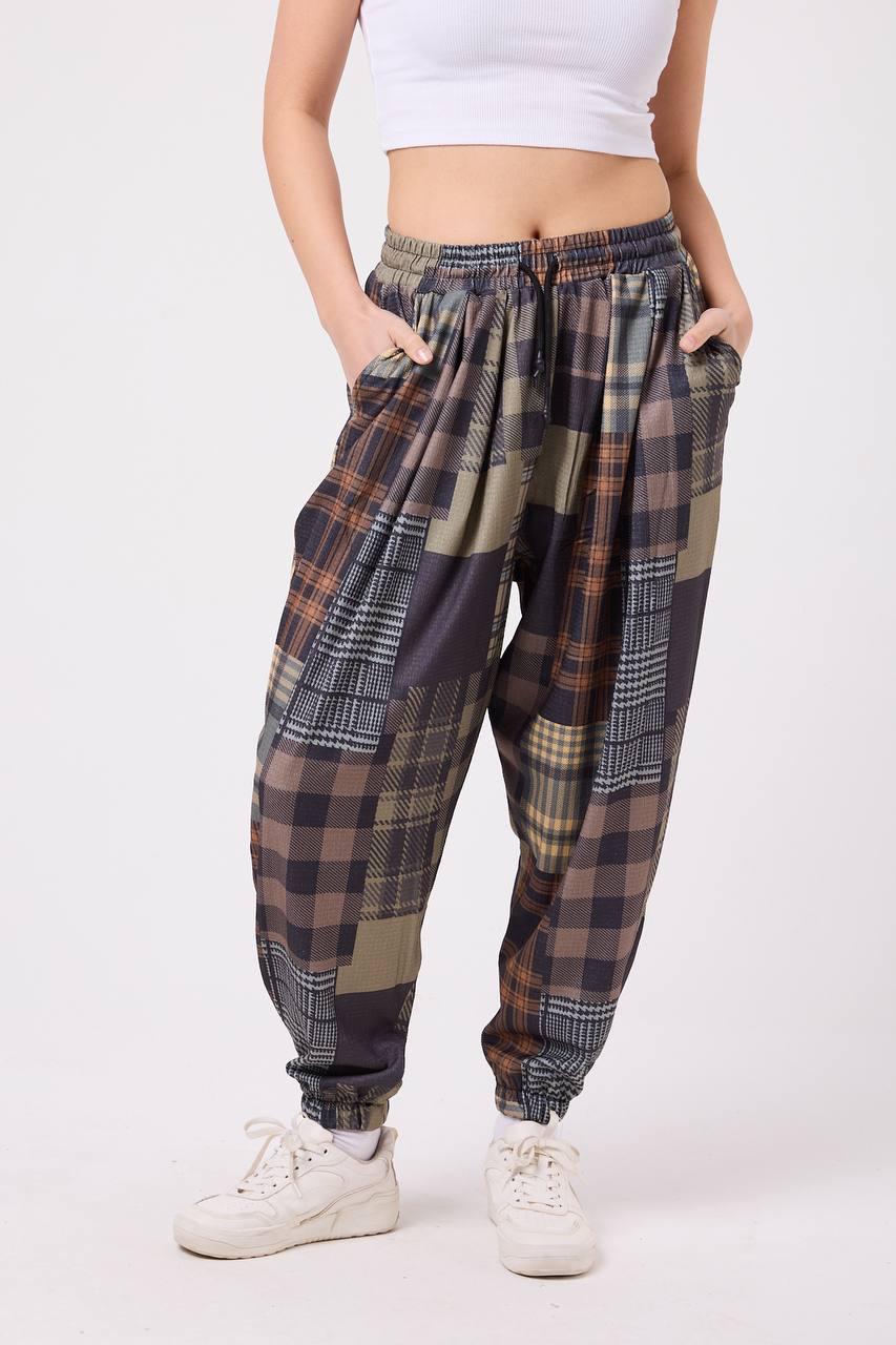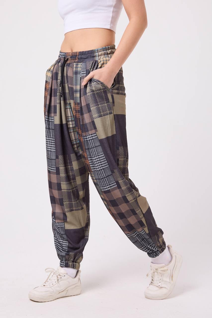 🧵 Gentle Lady – Дамски jogger шалвар с patch plaid десен