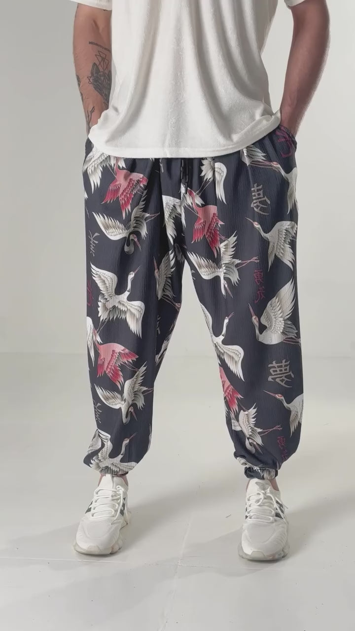 Japanese Stork – Плисиран полушалвар с ластик на кръста и глезените