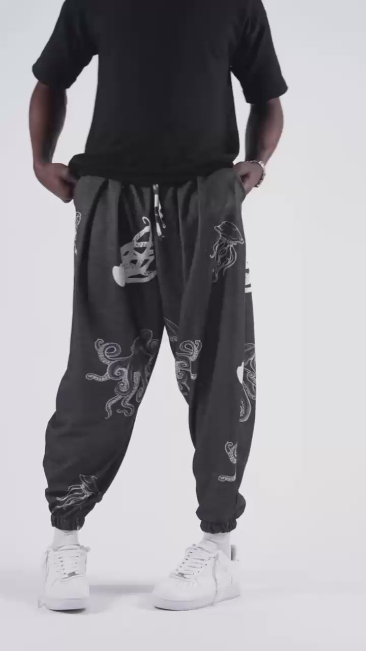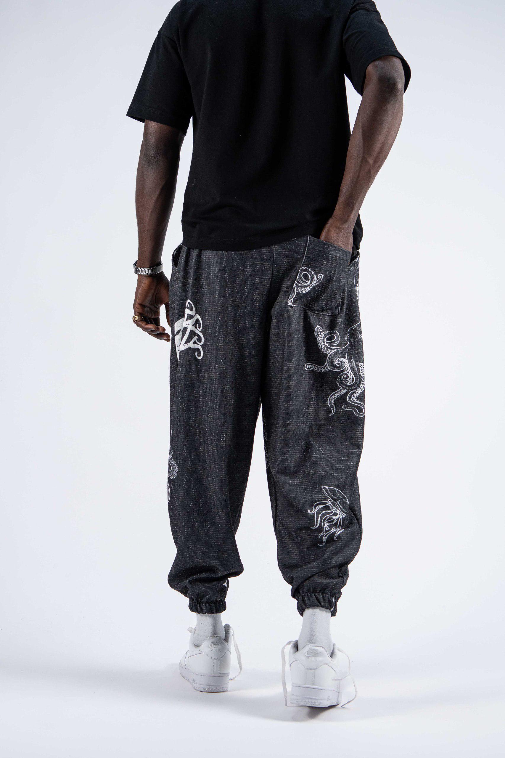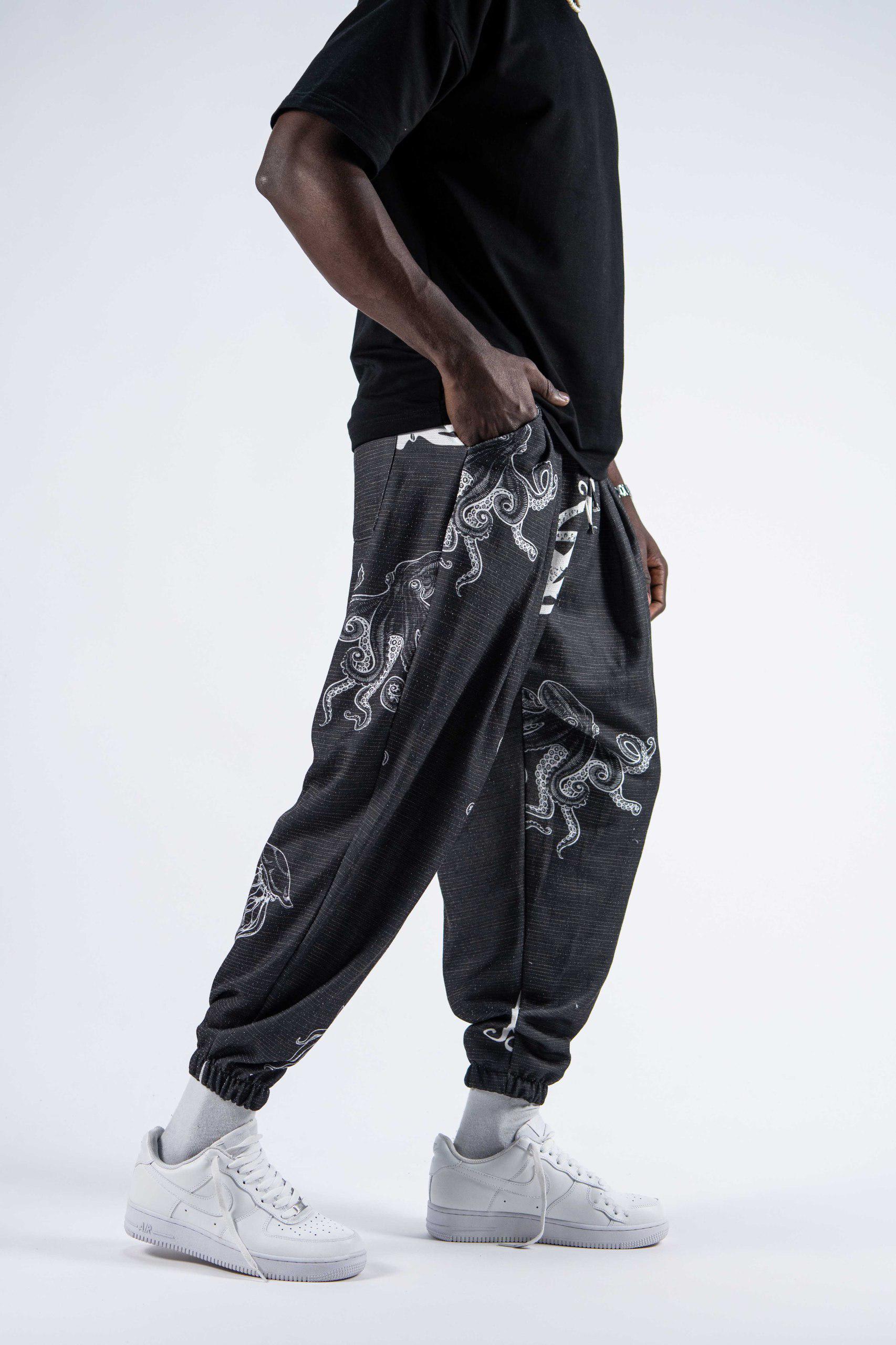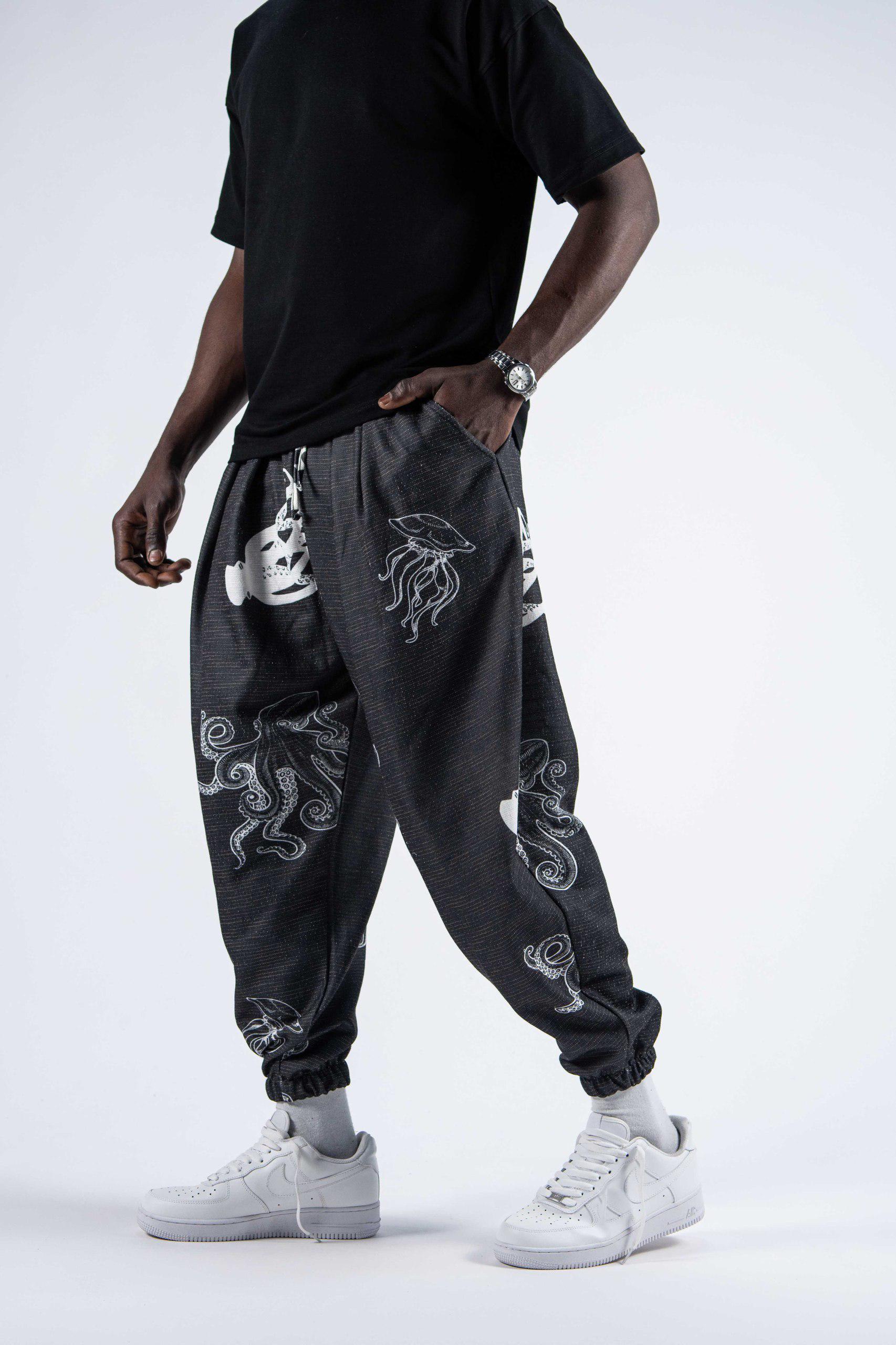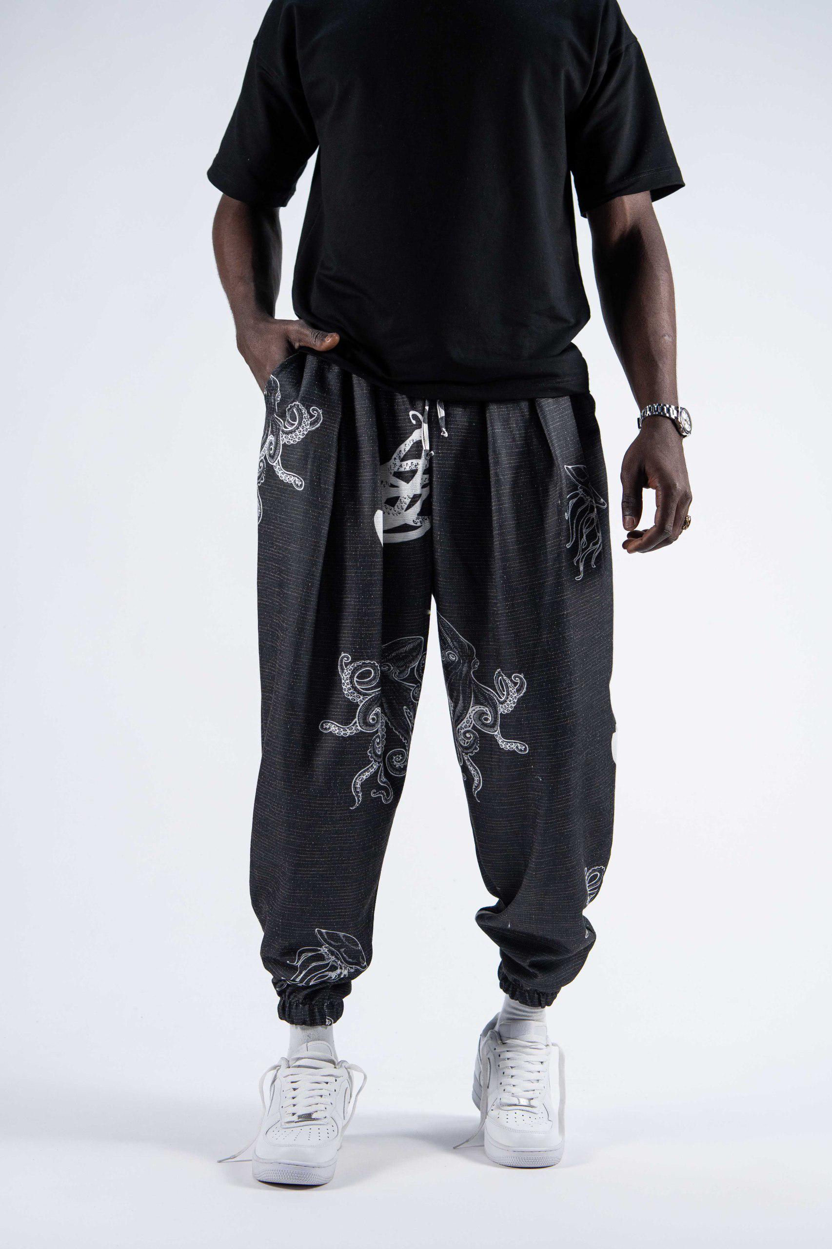Мъжки плисиран шалвар с арт десен "Octopus Spirit" – шалвар с уникален арт десен, вдъхновен от подводния свят. Леката и удобна материя в комбинация с oversize кройка предлага комфорт и изразителна визия – идеален избор за свободомислещи градски номади.