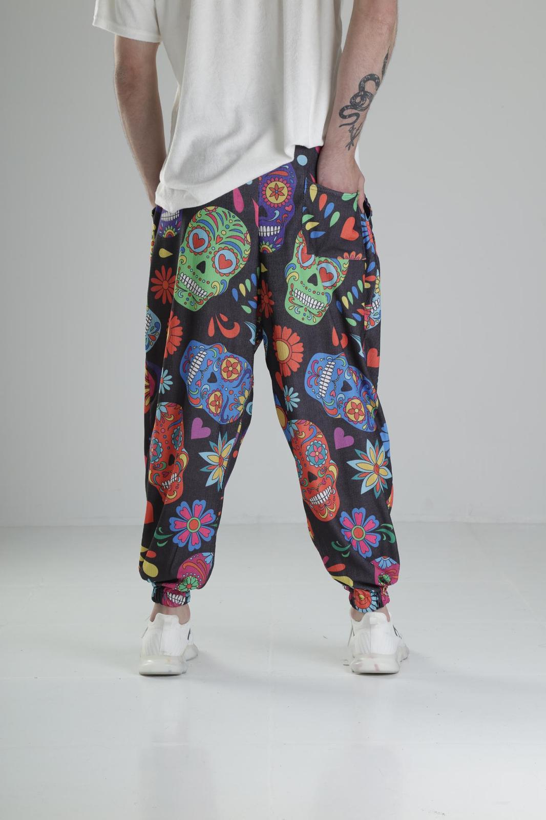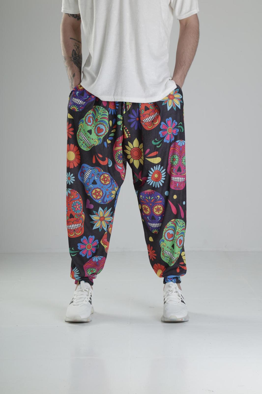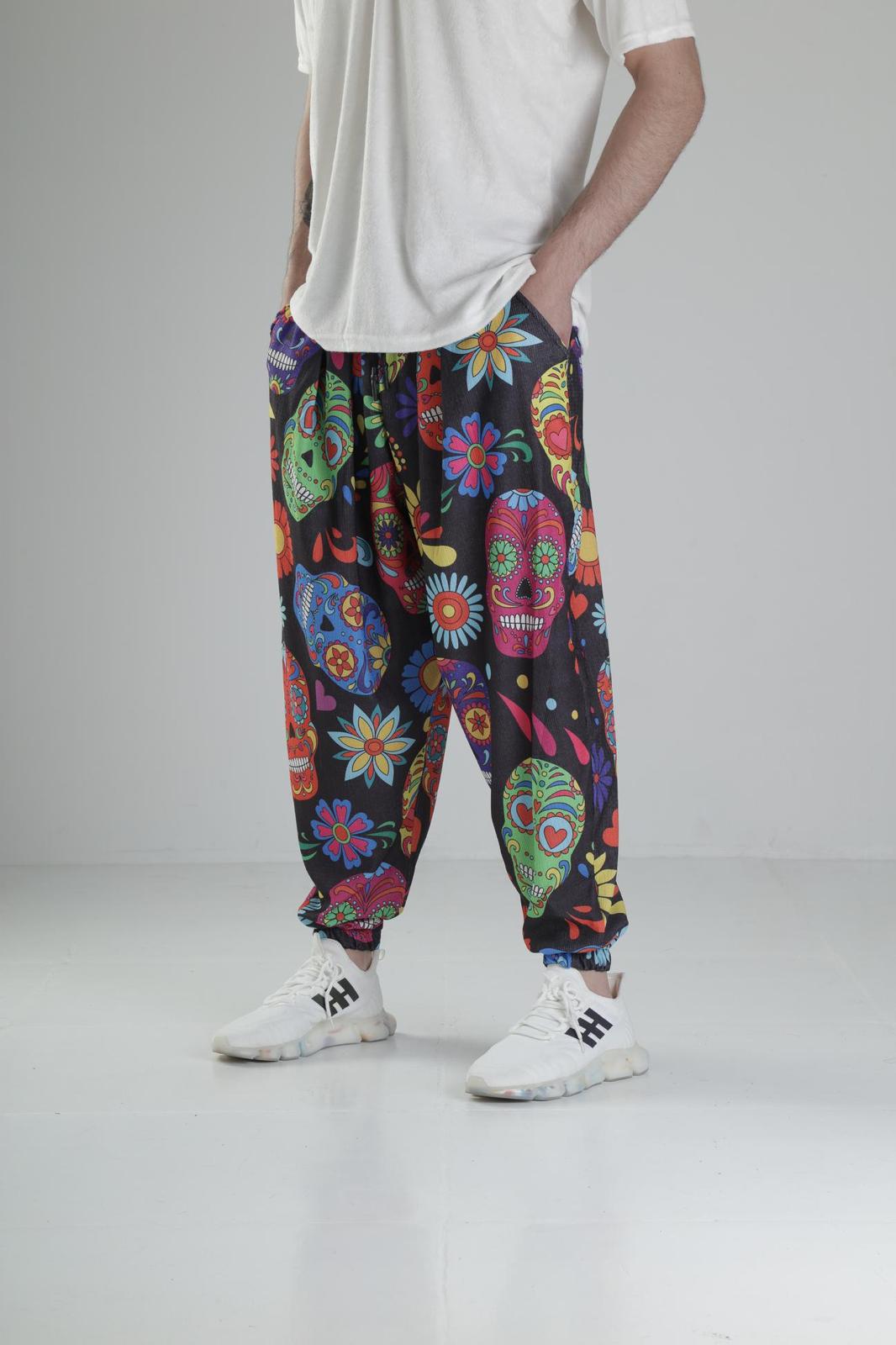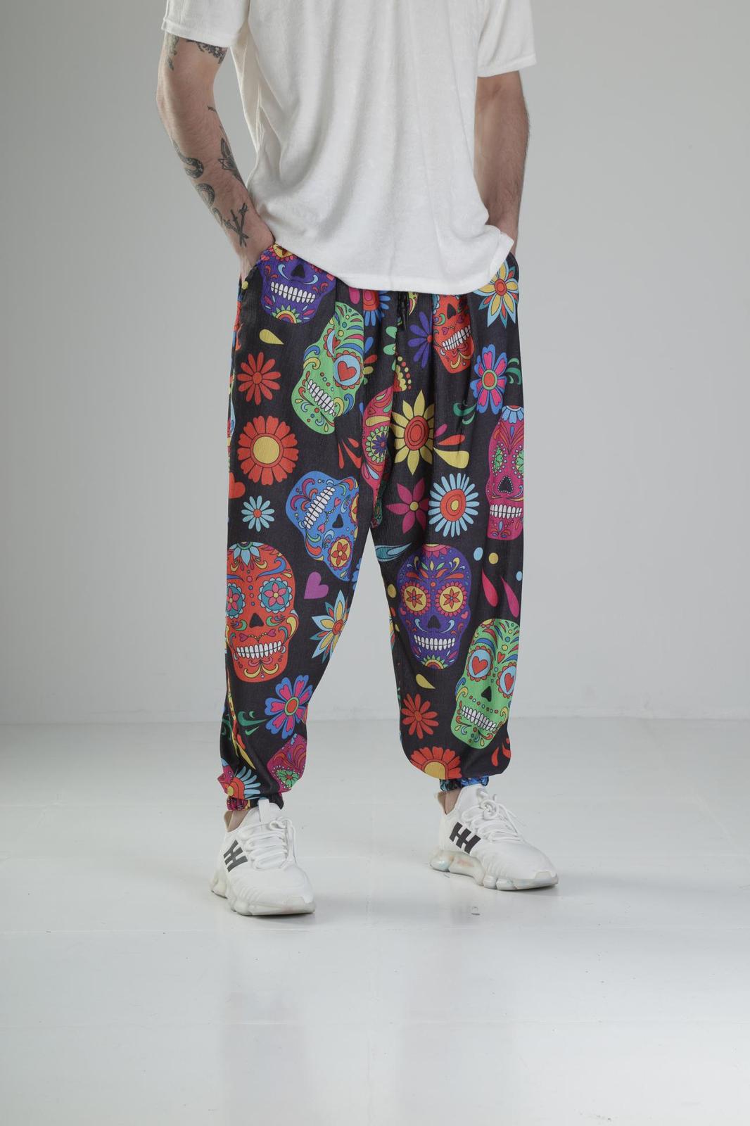 Изрази своя бунтарски дух със Rebel Skulls – мъжки панталон, който съчетава артистична визия с максимален комфорт. Цветните черепи и флорални акценти придават уникален характер на модела, докато ластичната талия и джобовете го правят практичен за ежедневна употреба.