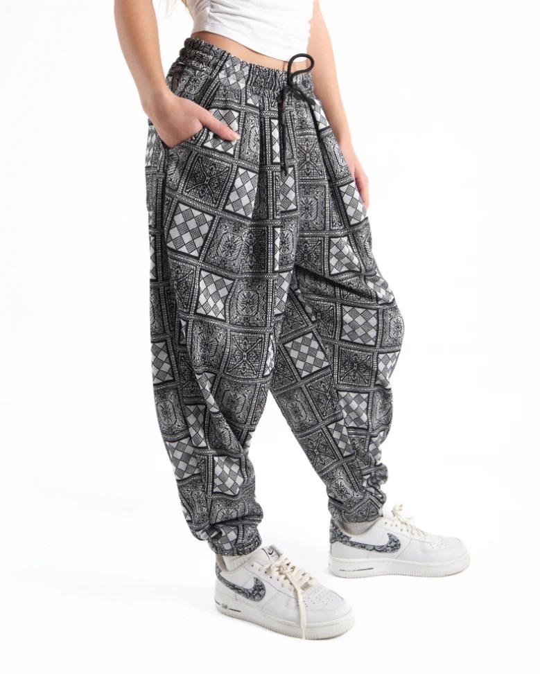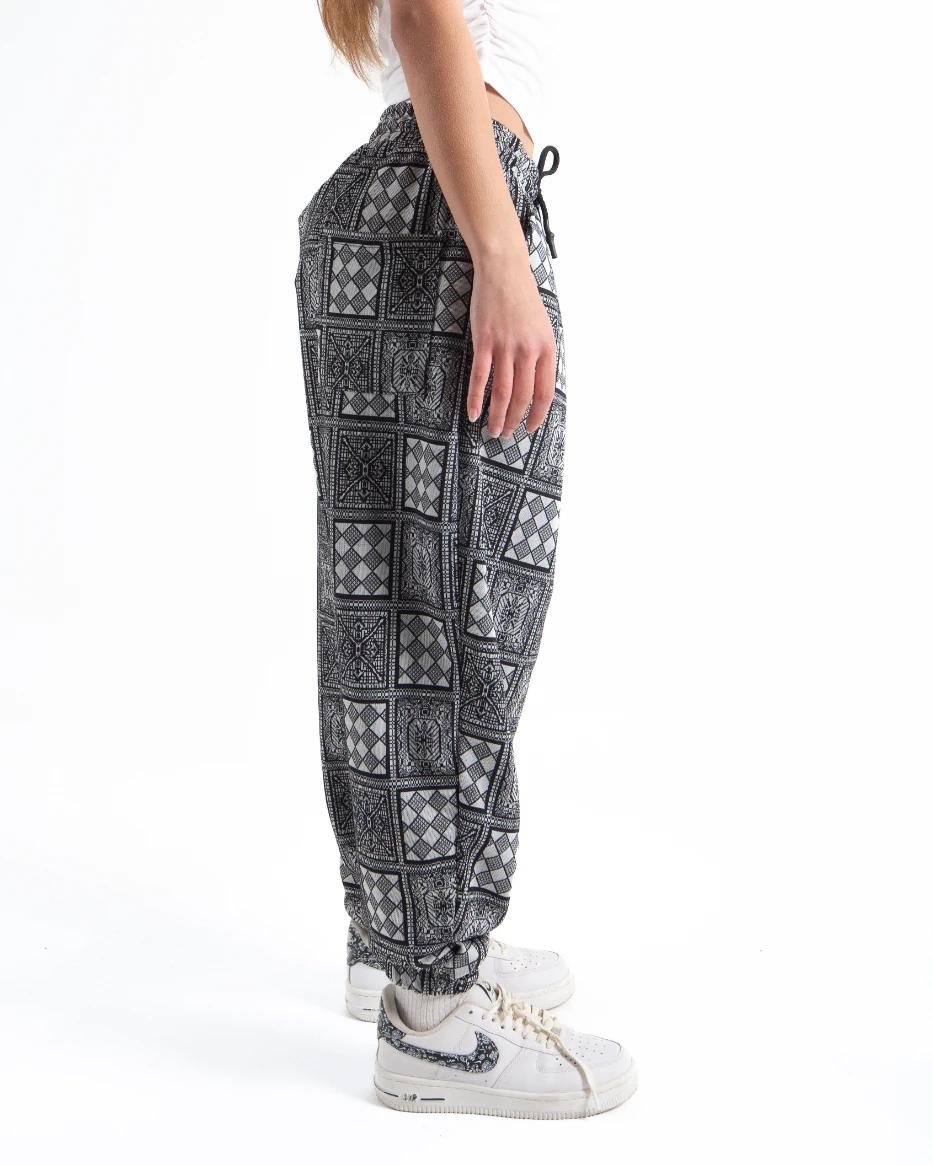 Създаден за жени, които обичат свободата в стила си, Silver Mosaic е дамски boho панталон, който съчетава артистични етно мотиви с модерна street визия. Моделът впечатлява с графичен принт в сиво-черни тонове и комфортна baggy кройка, която подчертава индивидуалността и движението.