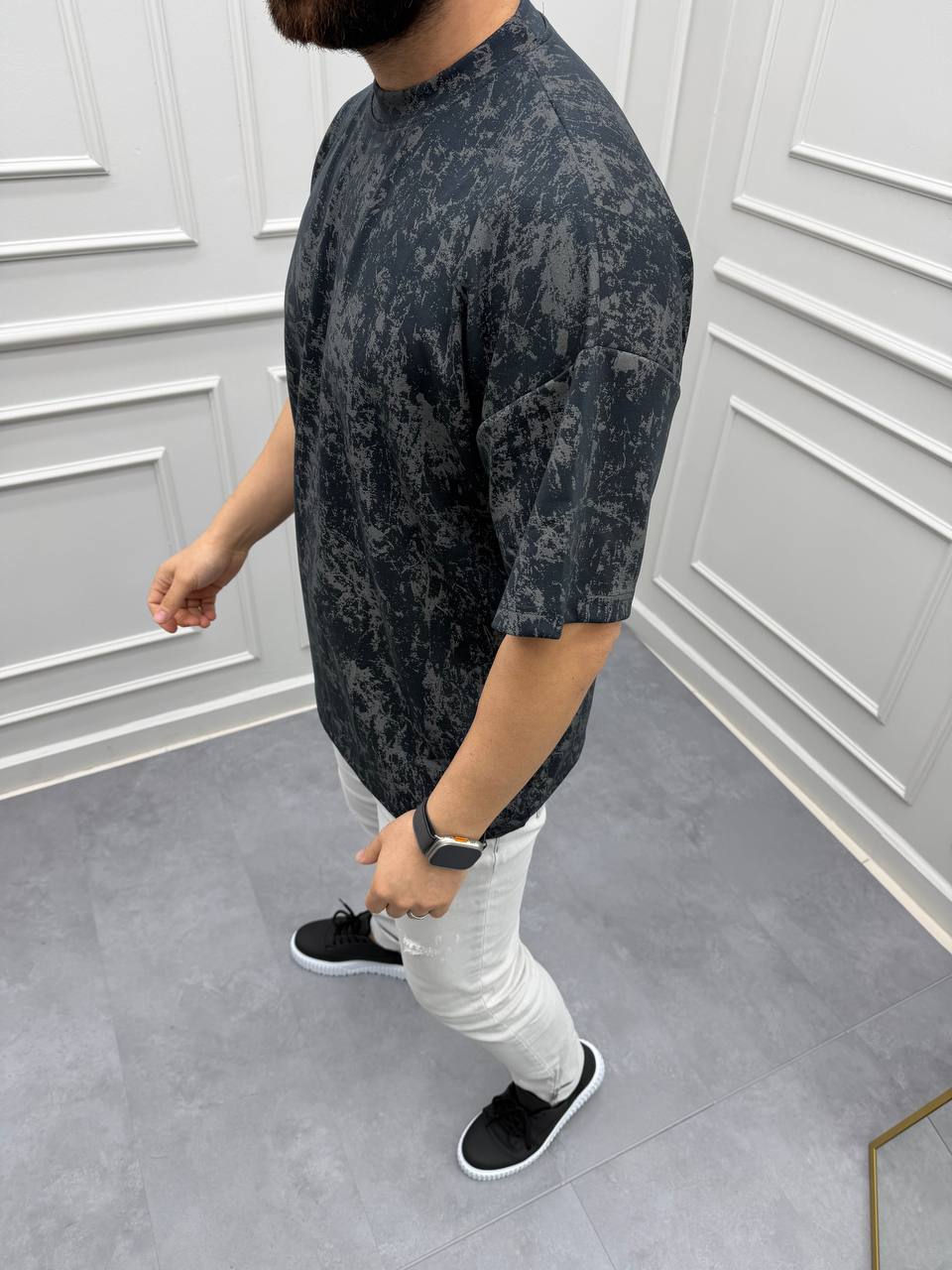 Stone Fade Oversize Tee е модерна мъжка тениска със свободна кройка, acid wash ефект и плътна premium материя. Моделът е създаден за комфорт, стил и силно street излъчване, подходящ както за ежедневие, така и за градски и спортно-елегантни комбинации.