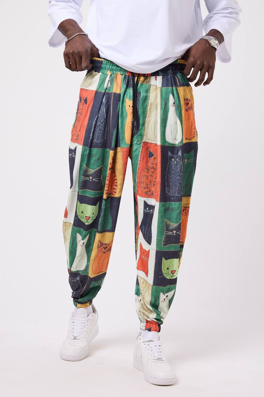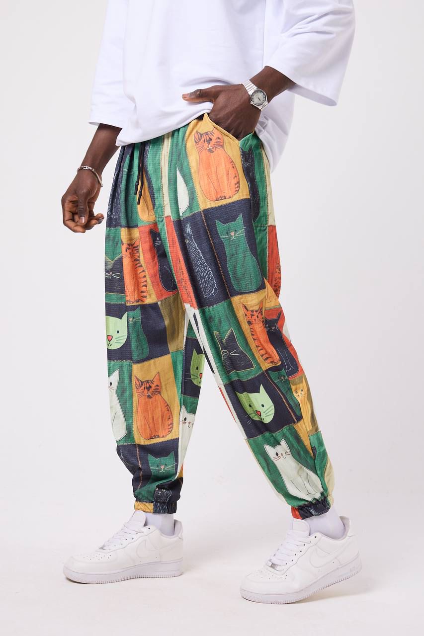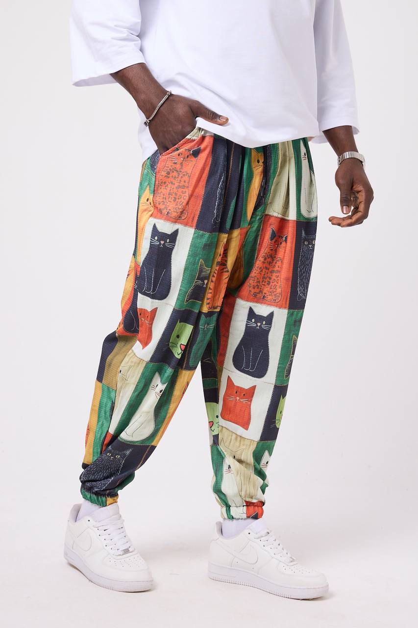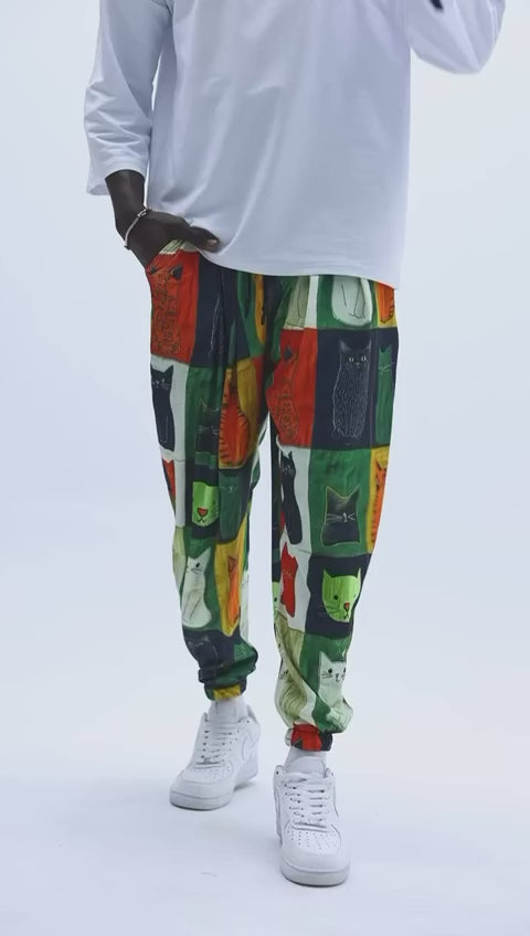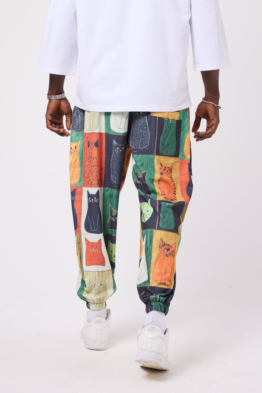 🐾 Urban Feline – Мъжки спортен шалвар с артистичен patch принт