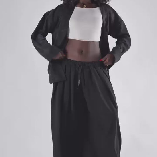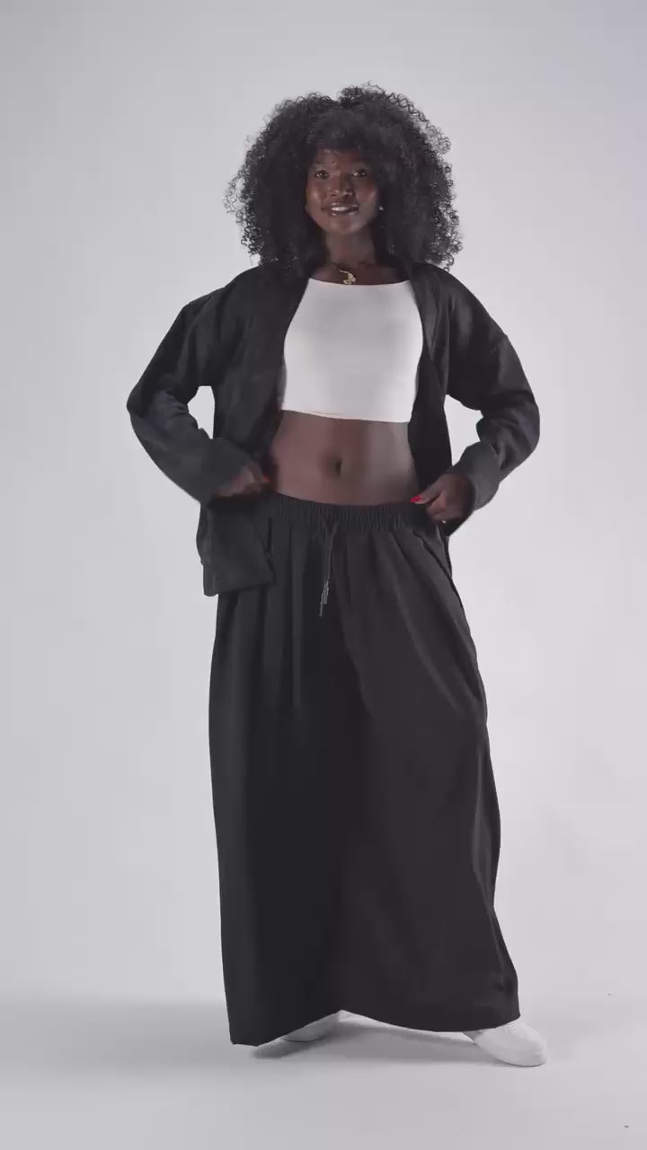- 👖 Кройка: свободна oversize горна част, стесняване към глезена – подчертава фигурата без да я ограничава