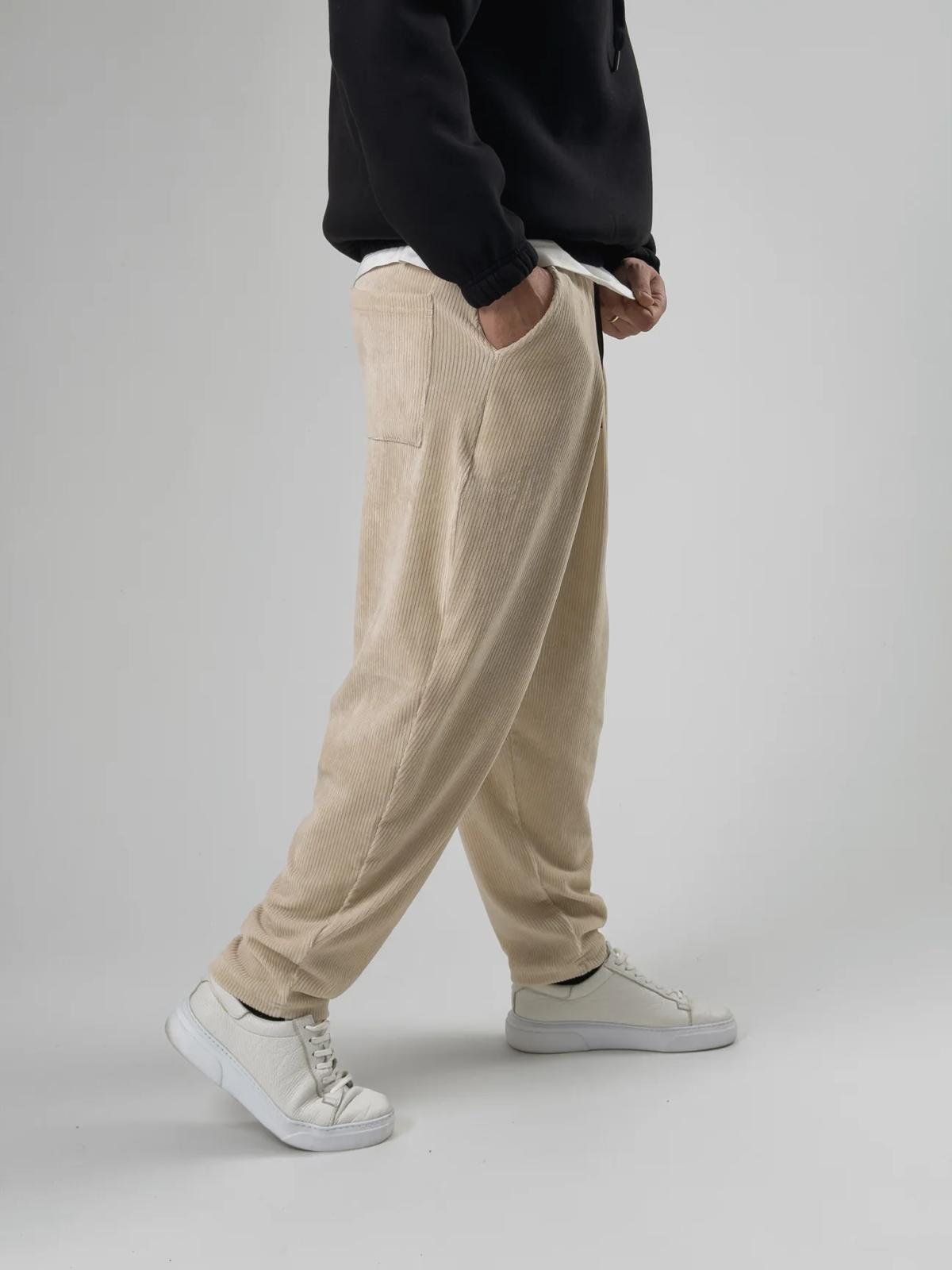- 👖 Кройка: relaxed горе, с леко стесняване към глезена – чист, модерен силует